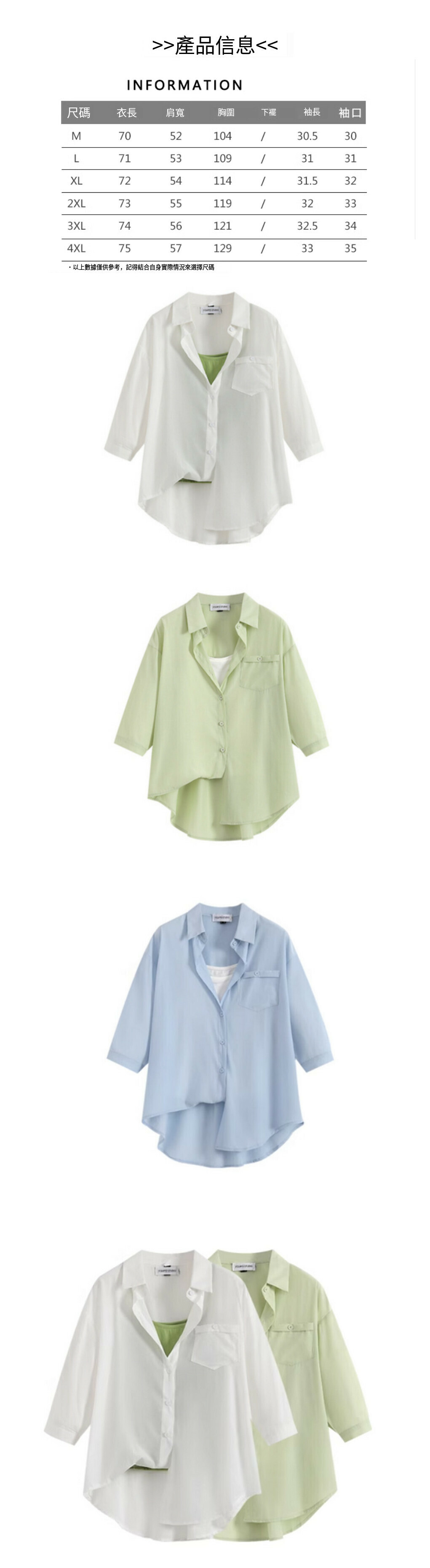 熱賣假兩件襯衫上衣【白色】【L-4XL碼】(下單後請聯絡客服確認發貨尺碼)
