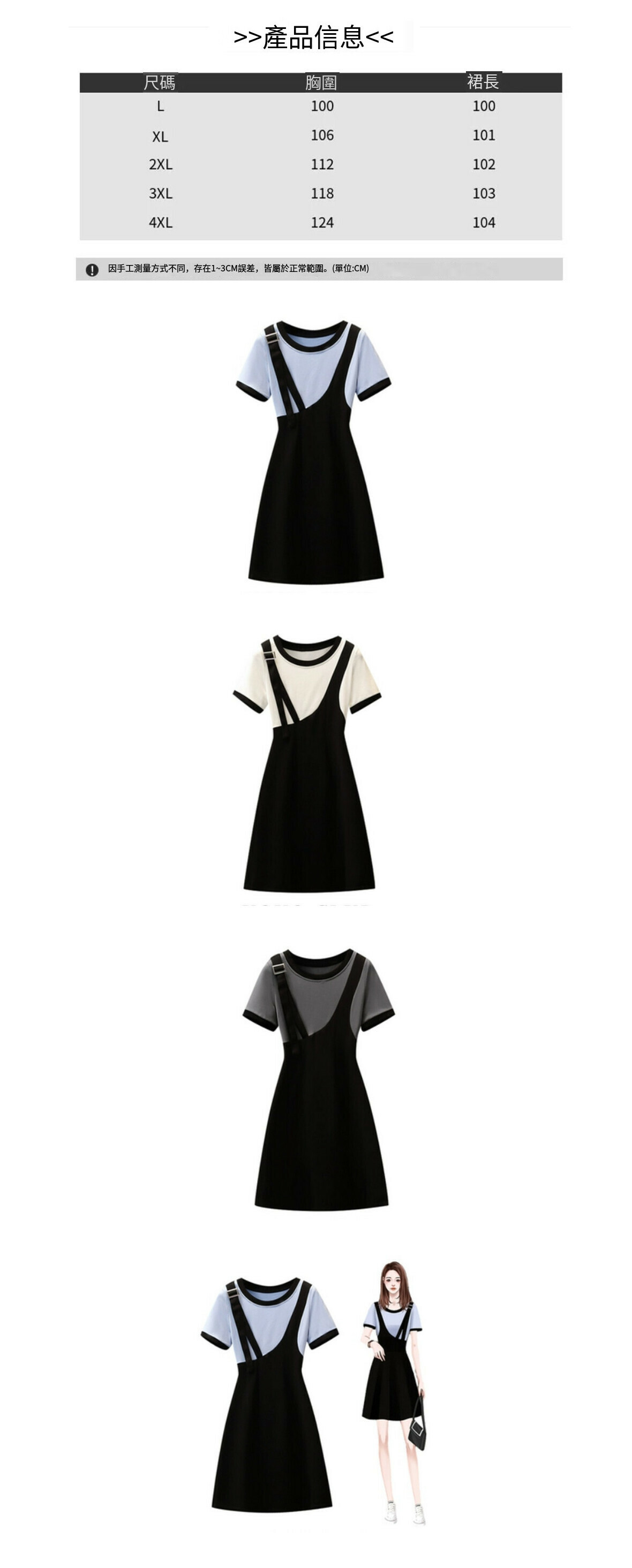 熱賣假兩件拼接連衣裙【白色】【L-4XL碼】(下單後請聯絡客服確認發貨尺碼)