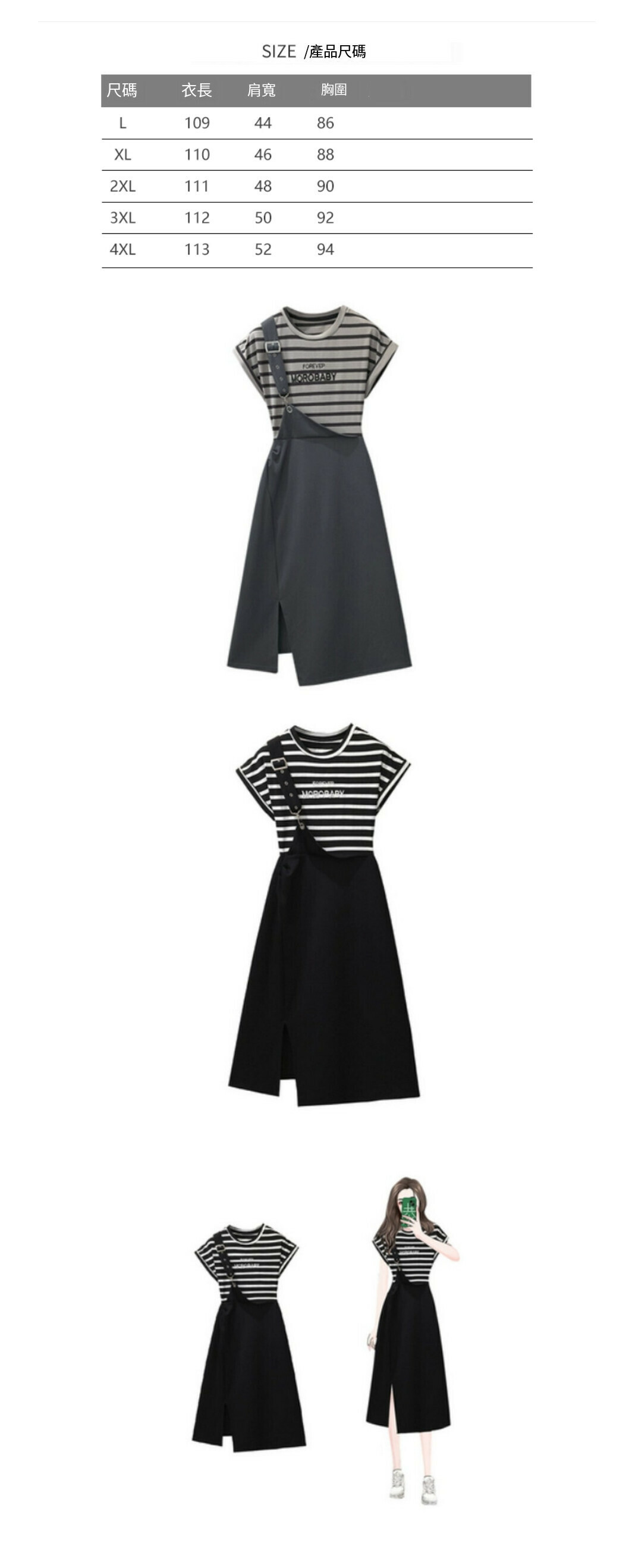 熱賣假兩件條紋連衣裙【灰色】【L-4XL碼】(下單後請聯絡客服確認發貨尺碼)