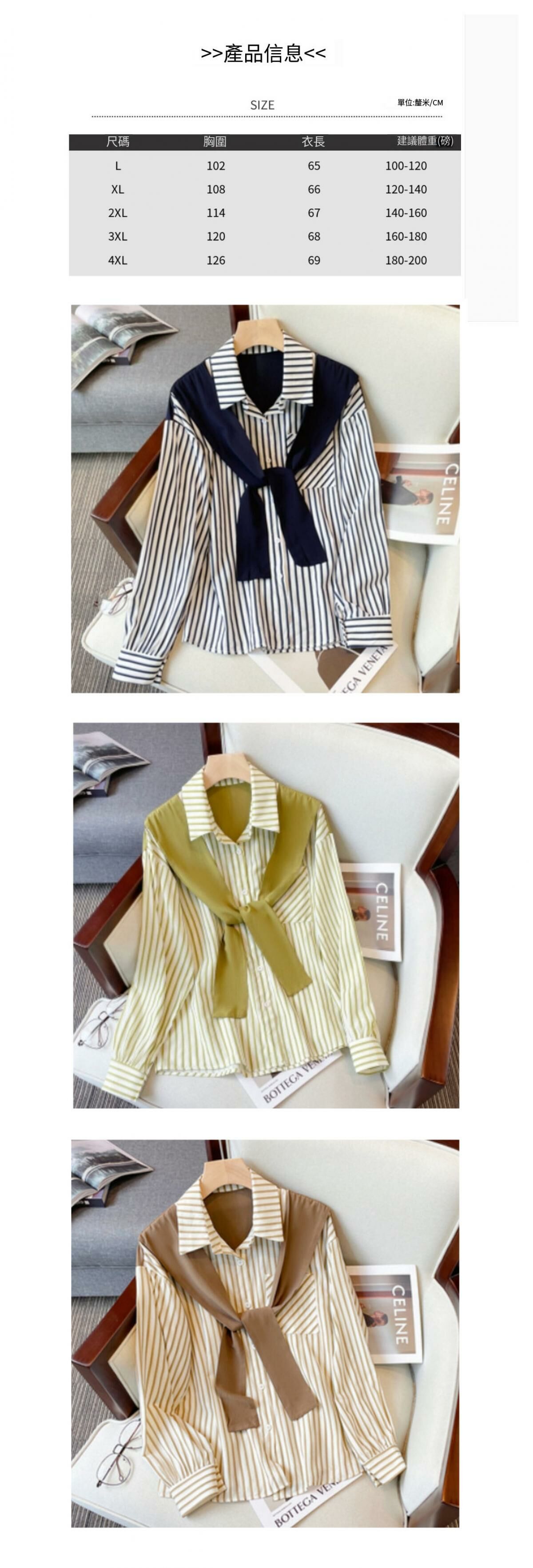 熱賣假兩件條紋襯衫【卡色】【M-3XL碼】(下單後請聯絡客服確認發貨尺碼)