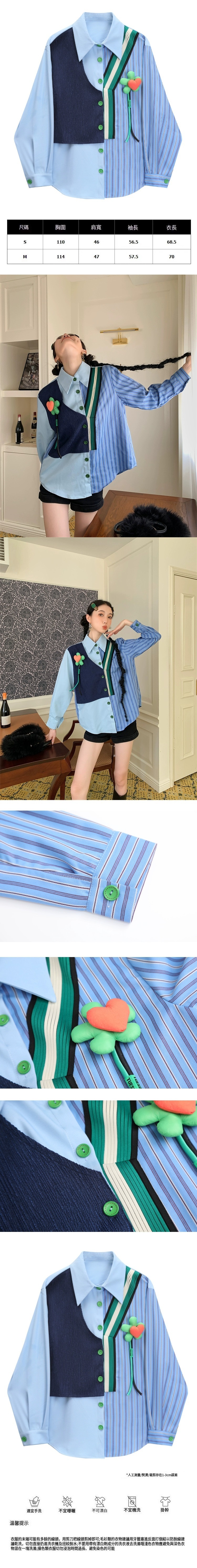 熱賣假兩件立體花朵襯衫(圖片色)(S-L碼)(下單後聯絡客服確認發貨尺碼)