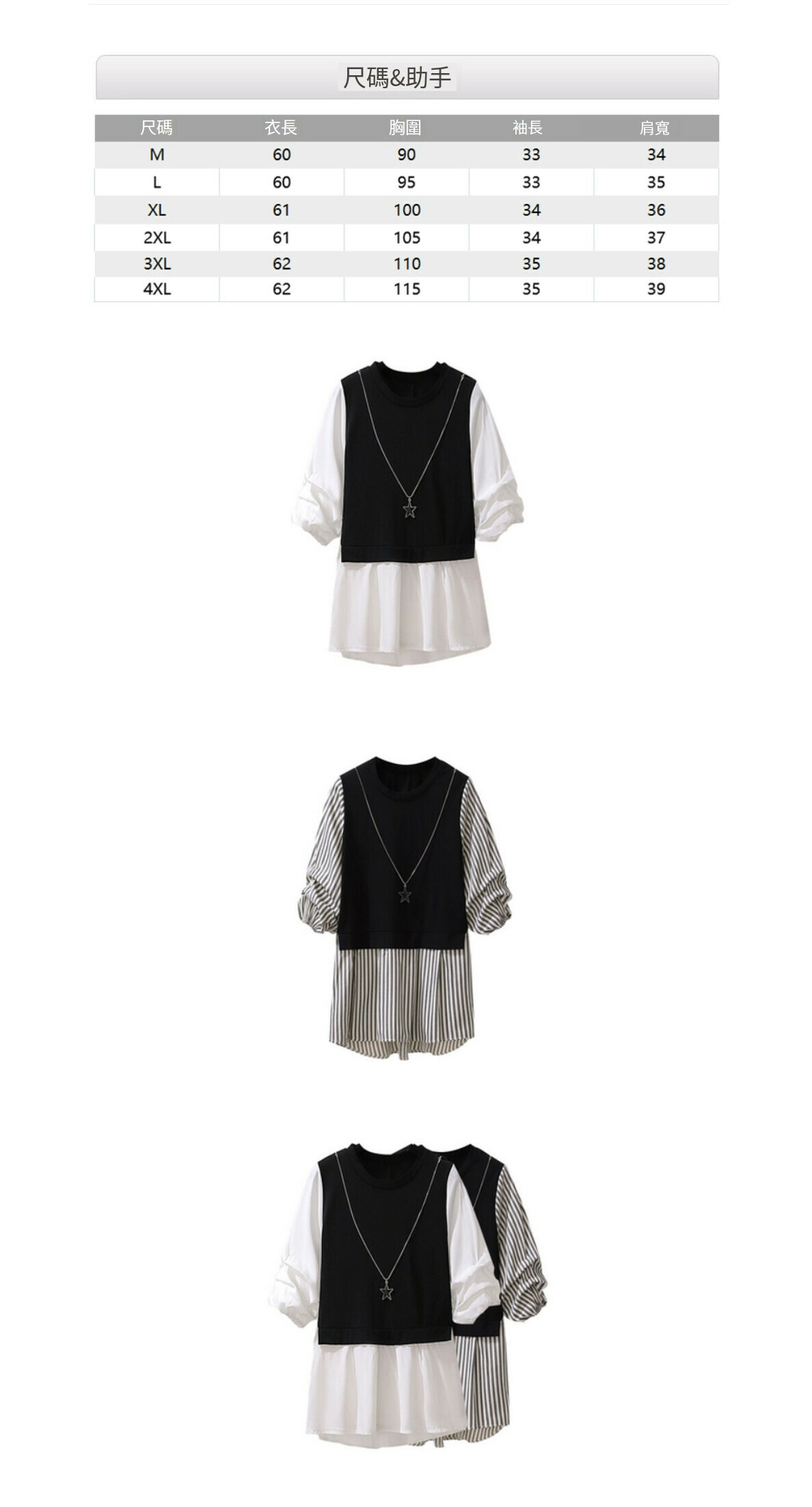 熱賣假兩件七分袖襯衫【條紋】【M-4XL碼】(下單後請聯絡客服確認發貨尺碼)