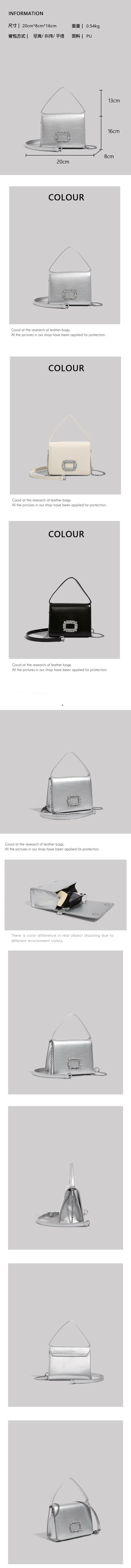 熱賣時尚鑲鉆手提小方包鏈條斜挎包【銀色】【尺寸:20cm*8cm*16cm】
