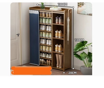 熱賣時尚防塵鞋櫃(深藍防塵帘 靴架款9層102*28*130CM)