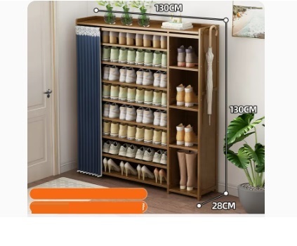 熱賣時尚防塵鞋櫃(深藍防塵帘 靴架款9層130*28*130CM)