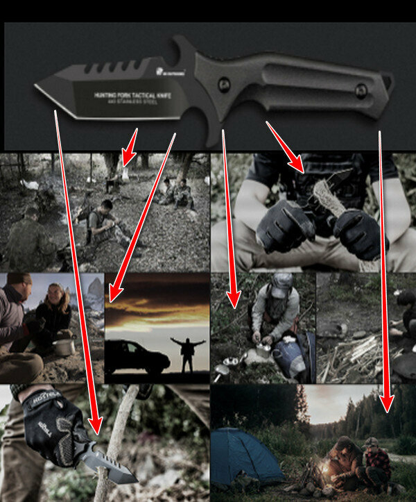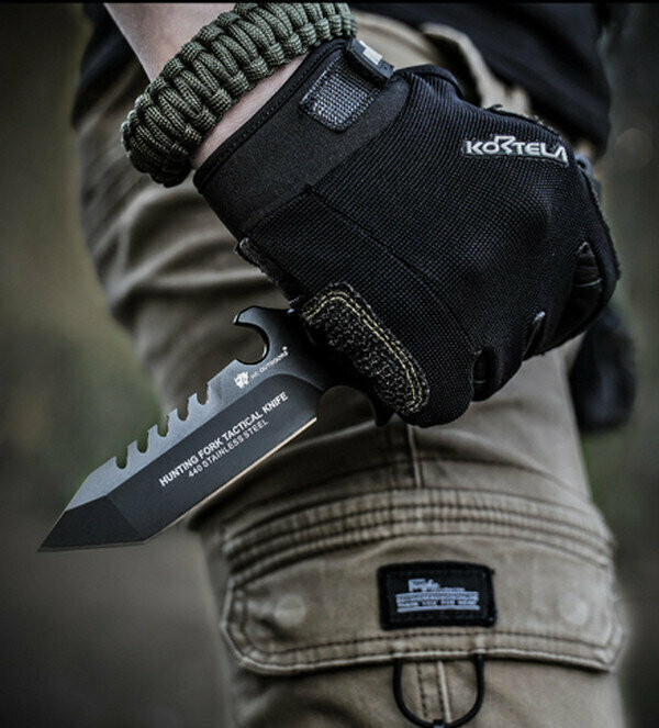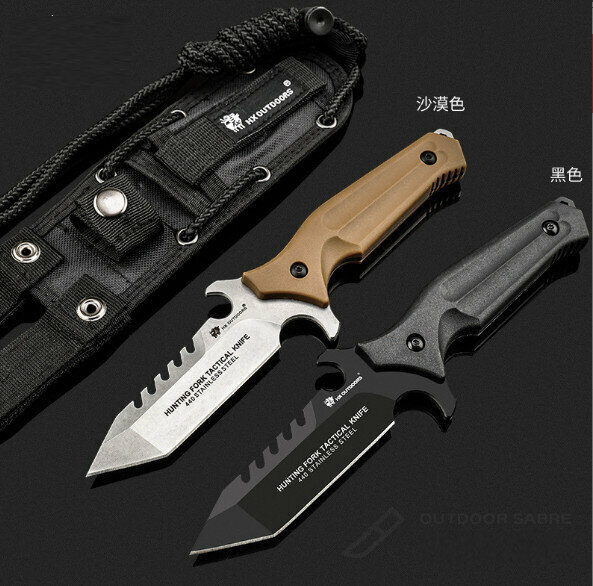 熱賣野外防身刀-獵叉戰術刀-黑色【D-204】全長235mm