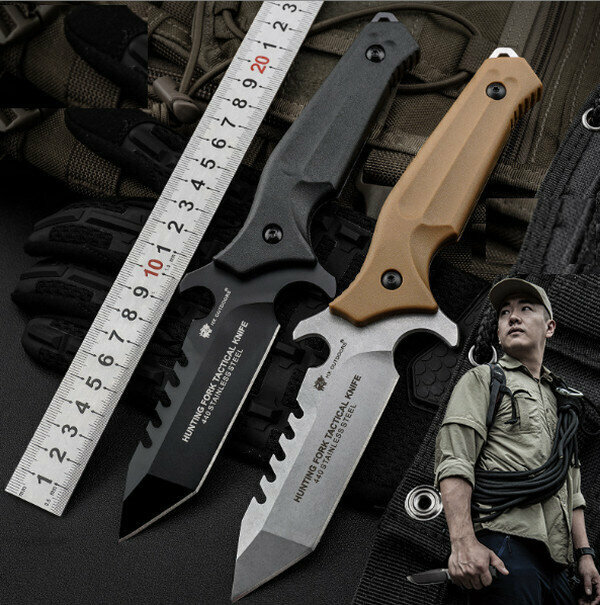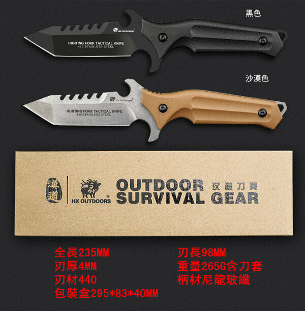 熱賣野外防身刀-獵叉戰術刀-沙漠色【D-204】全長235mm