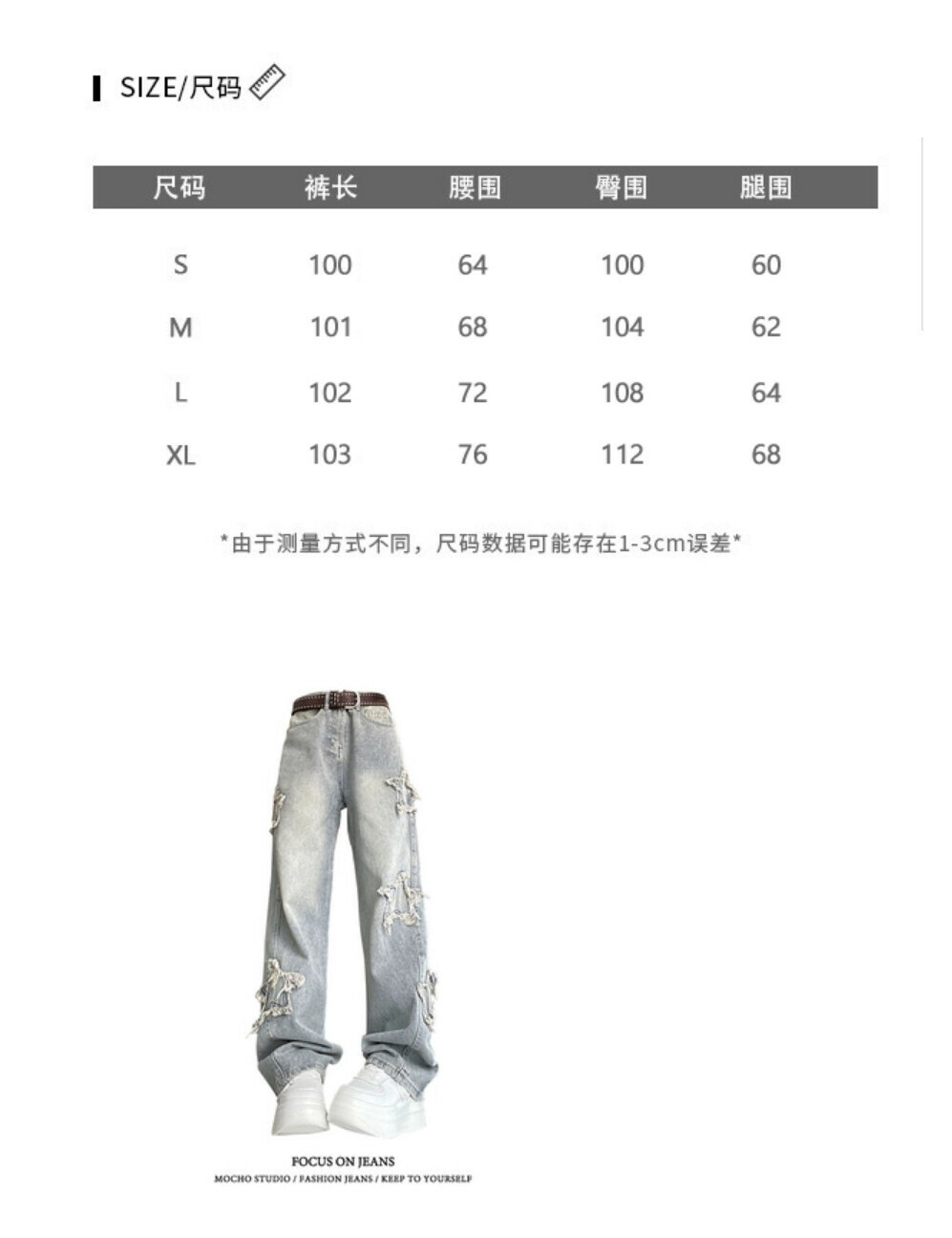 熱賣五角星直筒牛仔褲【淺藍色】尺碼【S碼-XL碼】【下單後請聯絡客服確認發貨尺碼】