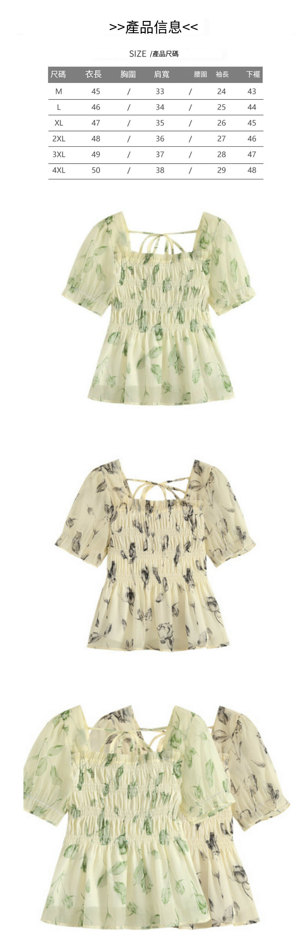 熱賣碎花雪紡短袖上衣【黑花】【M-4XL碼】(下單後請聯絡客服確認發貨尺碼)
