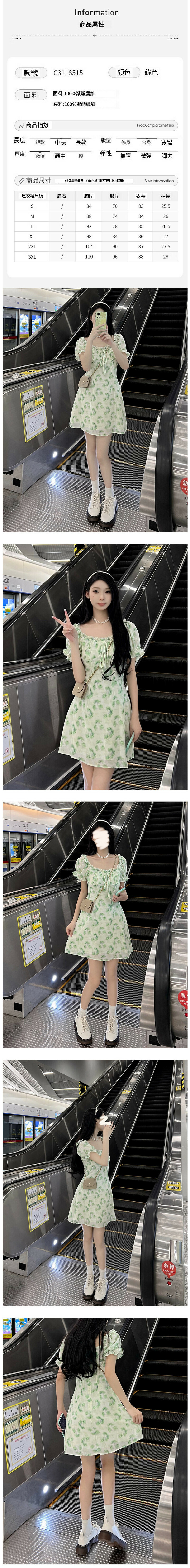 熱賣碎花連衣短裙(綠色 S碼-XXL碼)(下單後請聯絡客服確認發貨尺碼)