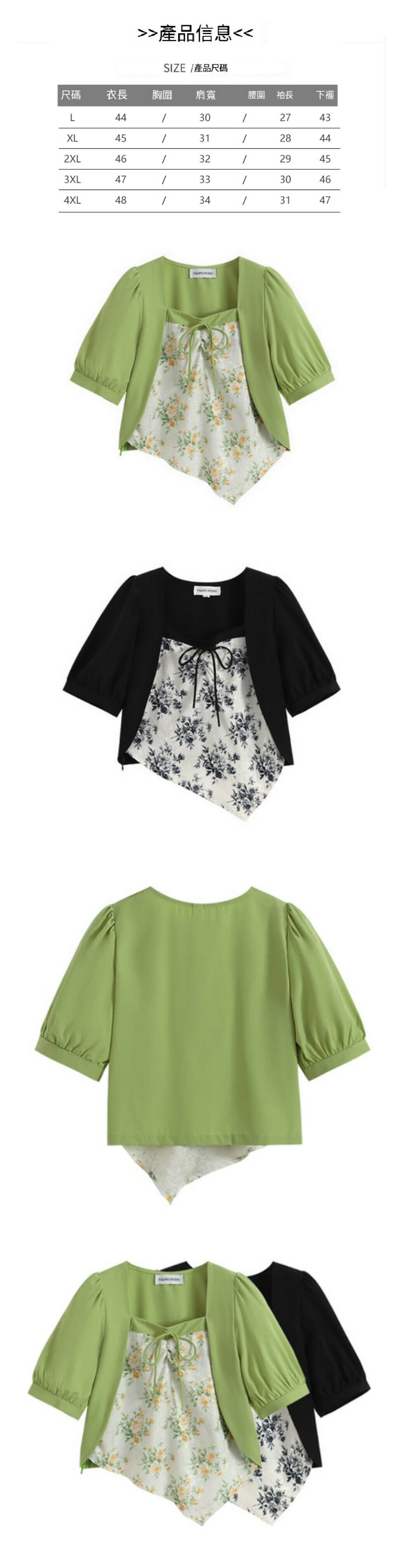 熱賣碎花假兩件短袖上衣【綠色】【L-4XL碼】(下單後請聯絡客服確認發貨尺碼)