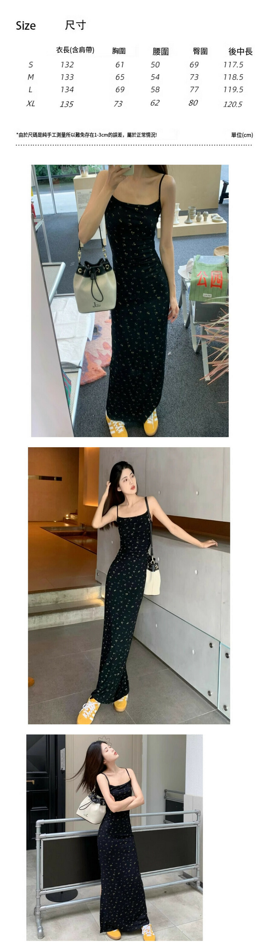熱賣碎花針織吊帶裙【黑色】尺碼【S碼—XL碼】【下單後請聯絡客服確認發貨尺碼】