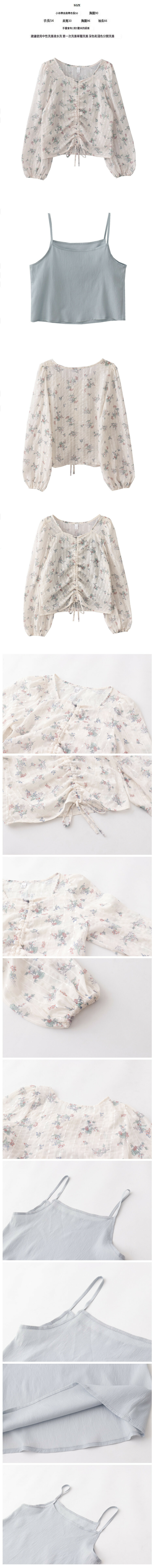 熱賣碎花長袖抽繩系帶襯衫【圖片色】【均碼】