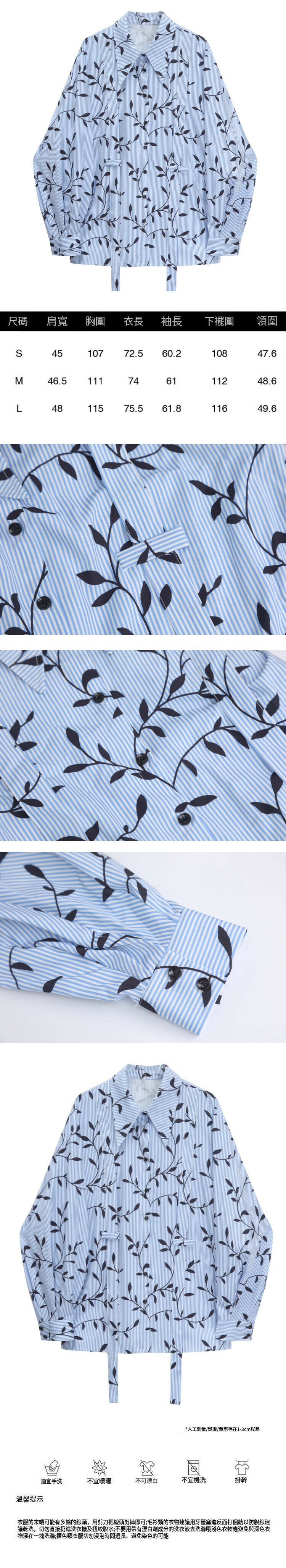 熱賣碎花條紋寬鬆襯衣(藍色)(S-L碼)(下單後聯絡客服確認發貨尺碼)
