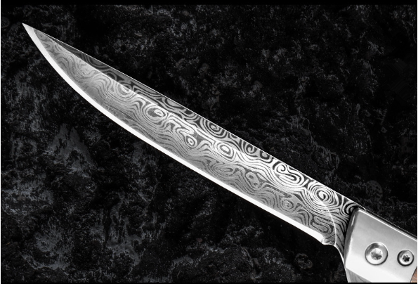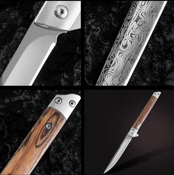 熱賣折疊刀(大馬士革紋方頭配皮套)(規格:總長21.5*刃長9.5*刃寬1.3*刃厚0.28CM)