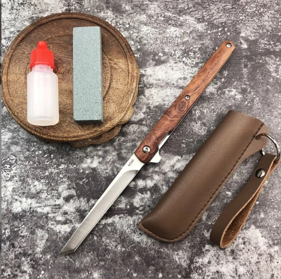 熱賣折疊刀(紅木平頭+磨刀石+護刀油)(規格:總長21.2*刃長9.5*刃寬1.2*刃厚0.3CM)
