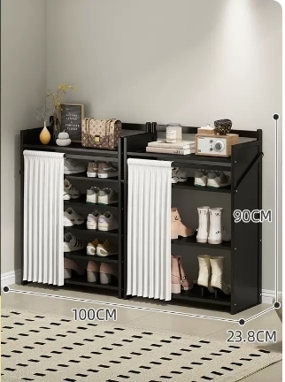 熱賣折疊收納鞋櫃(曜石黑升級防塵組合款 六層 100*23.8*90CM)