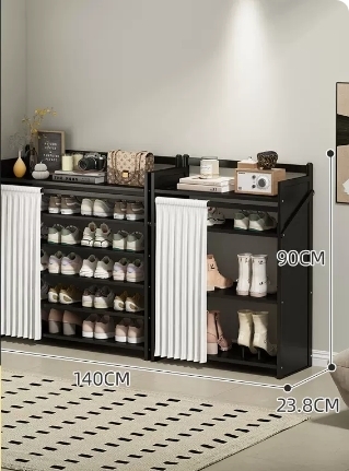 熱賣折疊收納鞋櫃(曜石黑升級防塵組合款 六層 140*23.8*90CM)