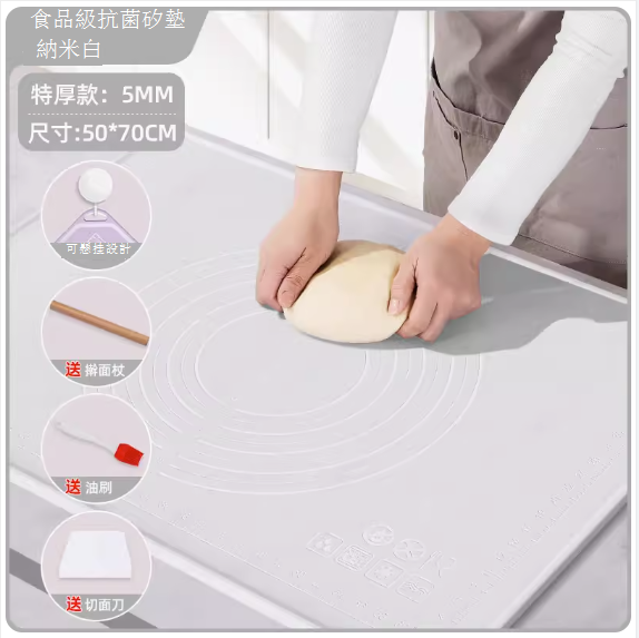 熱賣食品級揉面墊(經典白-超大號50*70CM【特厚5mm 贈送超值三件套】)