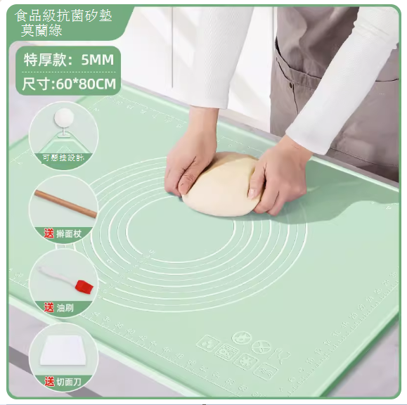 熱賣食品級揉面墊(抹茶綠-加大號60*80CM【特厚5mm 贈送超值三件套】)
