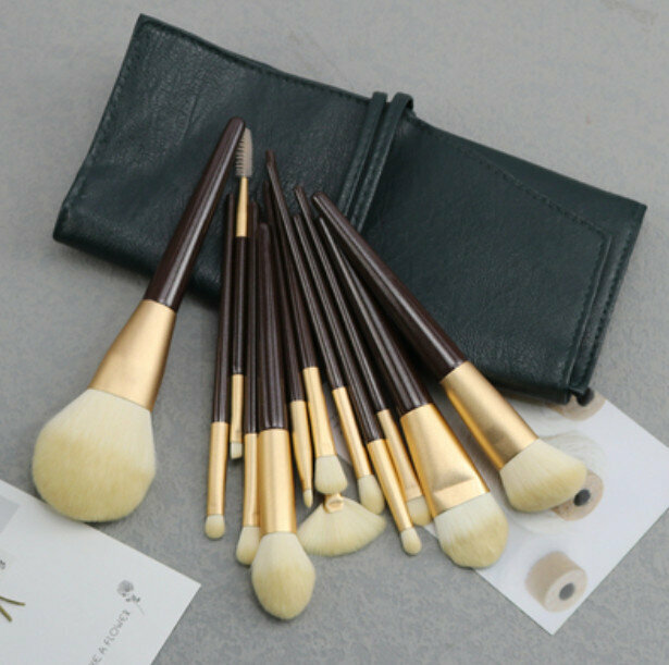 熱賣粉底美妝工具全套(13支棕色加綠桶)