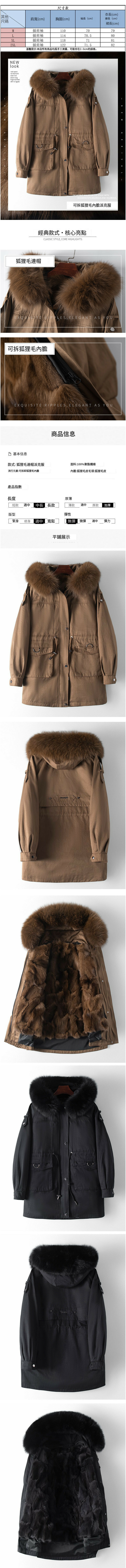 熱賣狐狸毛領連帽派克服(M-XL碼)(咖啡色)(下單後聯絡客服確認發貨尺碼)