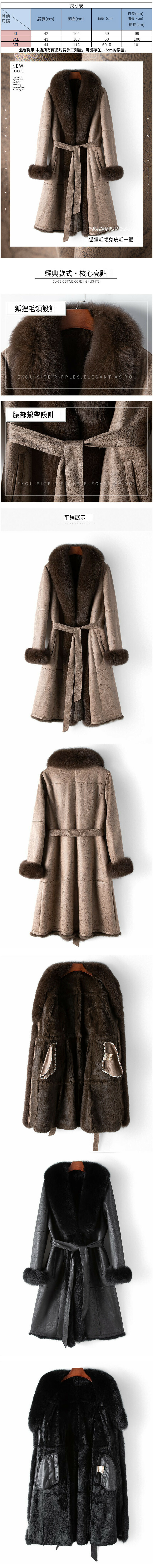 熱賣狐狸毛領兔皮毛一體長款外套(XL-3XL碼)(咖啡色)(下單後聯絡客服確認發貨尺碼)