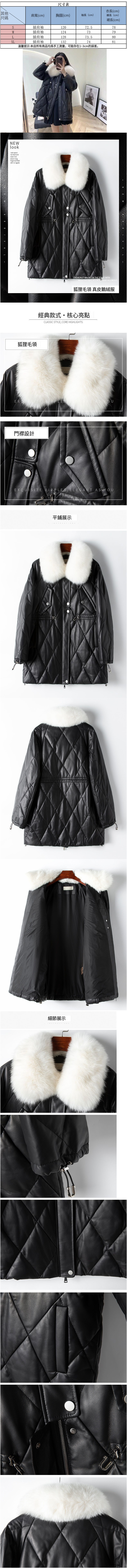 熱賣狐狸毛領綿羊皮白鵝絨大衣(S-L碼)(黑色)(下單後聯絡客服確認發貨尺碼)