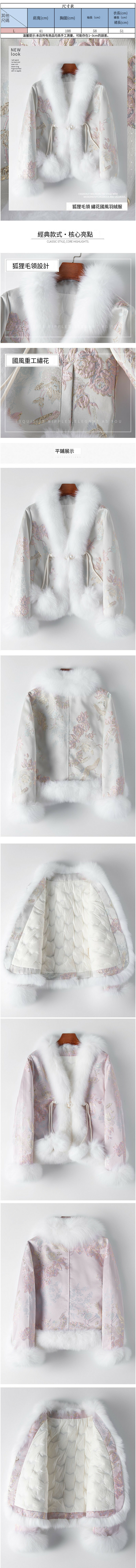 熱賣狐狸毛繡花鴨絨羽絨服(L碼)(亮灰色)