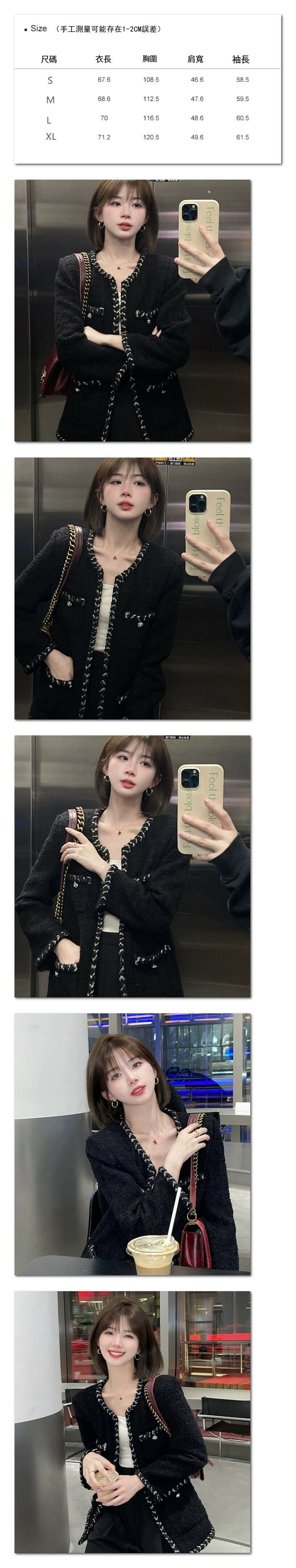 熱賣法式復古粗花呢小香風外套(黑色片珠黑)(尺碼:S/M/L/XL)(下單後聯絡客服確認發貨尺碼)