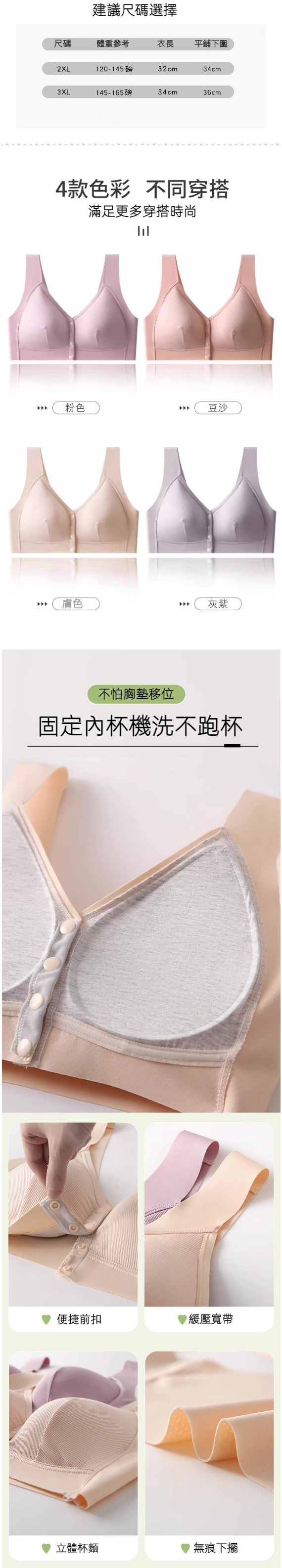 熱賣前扣式防下垂運動胸圍內衣(粉色)【2XL-3XL碼】【下單後聯絡客服確認發貨尺碼】