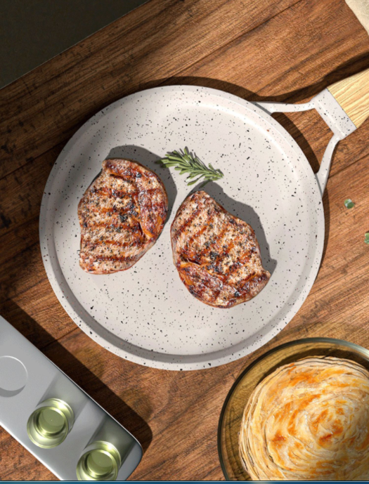 熱賣煎鍋麥飯皮平底鍋烘焙煎餅煎蛋班戟不粘(米白色)外逕20cm