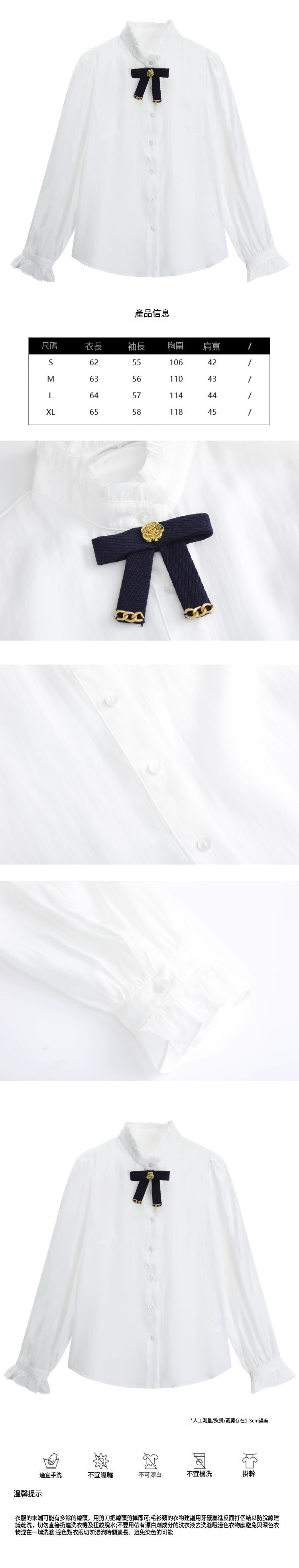 熱賣木耳邊蝴蝶結長袖襯衫(白色)(S-XL碼)(下單後聯絡客服確認發貨尺碼)