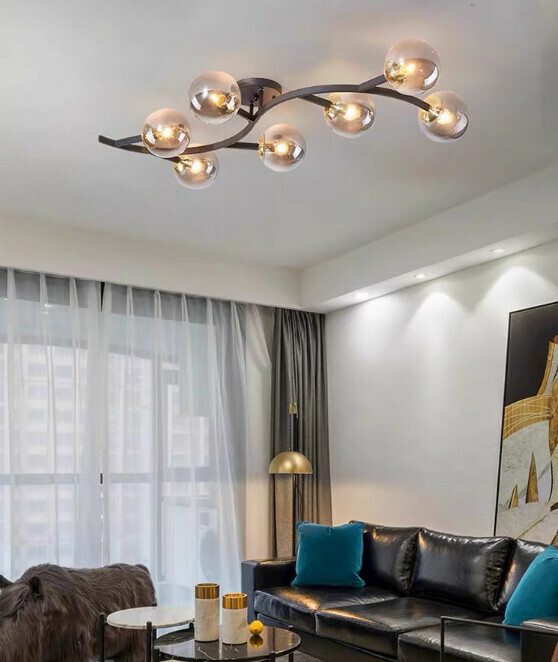 熱賣玻璃圓球吸頂燈(黑色5頭奶白罩/三色變光)