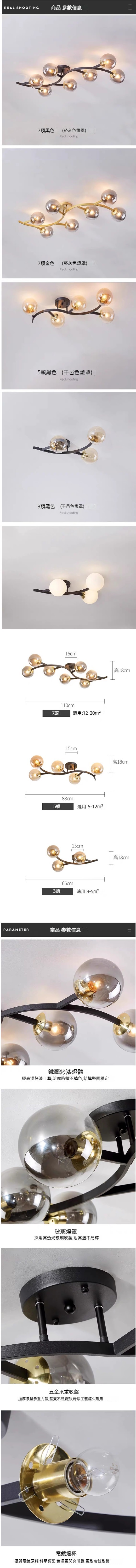 熱賣玻璃圓球吸頂燈(金色3頭煙灰罩/三色變光)
