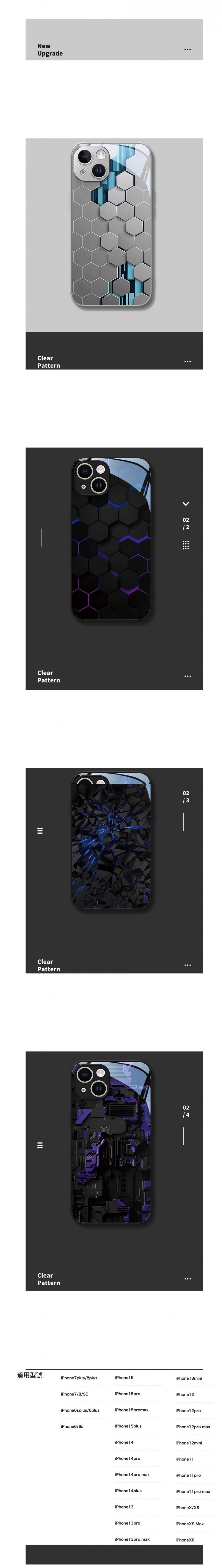 熱賣玻璃粒子蜂窩適用於iPhone系列手機殼(經典黑機械紫色)(下單後聯絡客服確認手機型號)