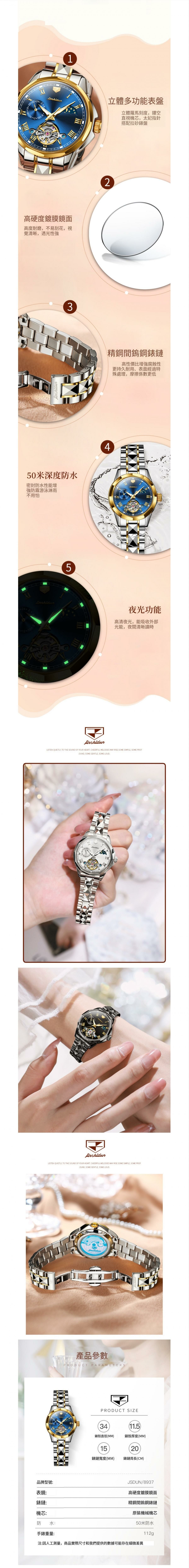 熱賣金仕盾鏤空機械錶防水女士手錶(鋼帶全金女)