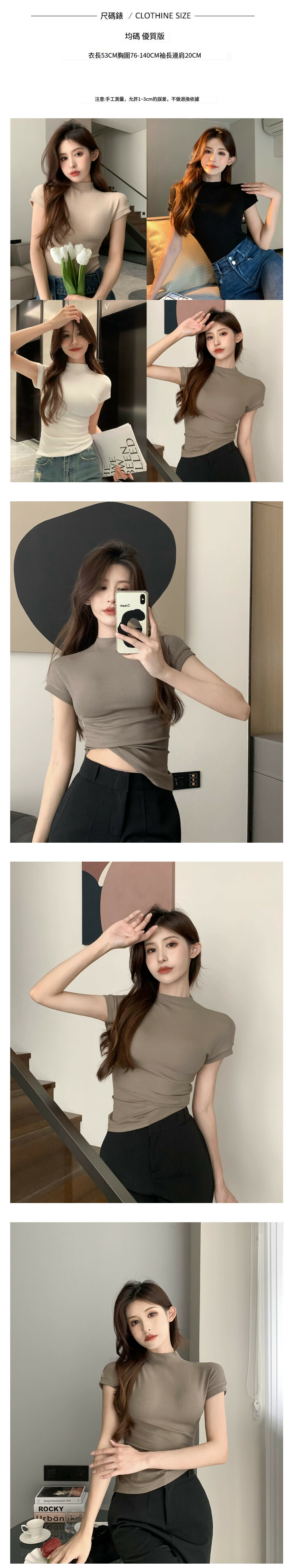 熱賣半高領打底短袖t恤【杏色(優質版)】【均碼】