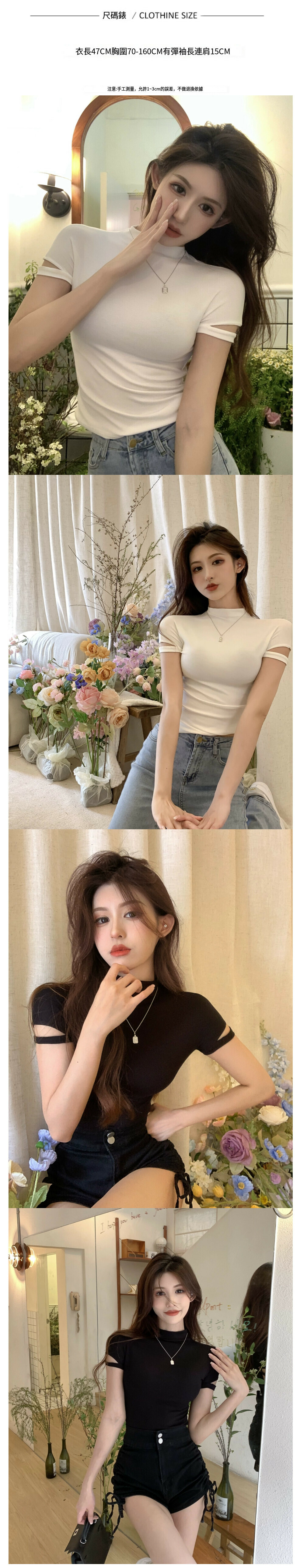 熱賣半高領修身純色短袖t恤【白色】【均碼】