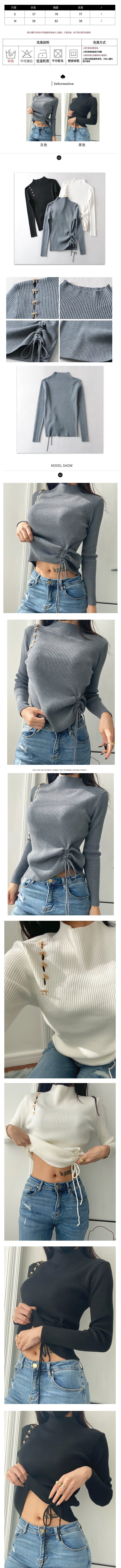 熱賣半高領抽繩設計針織打底衫(灰色)(S/M碼)(下單後聯絡客服確認發貨尺碼)
