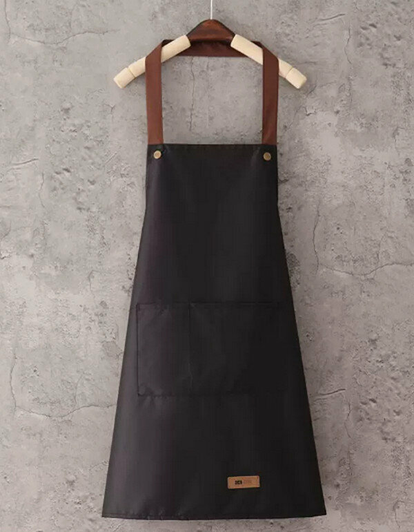 熱賣掛脖釘扣防水純黑色圍裙/均碼