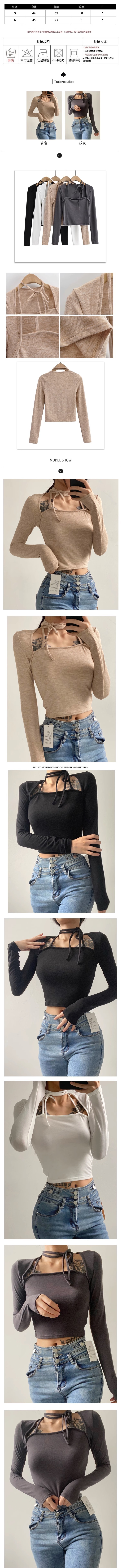 熱賣掛脖綁繩長袖短款T卹(白色)(S/M碼)(下單後聯絡客服確認發貨尺碼)
