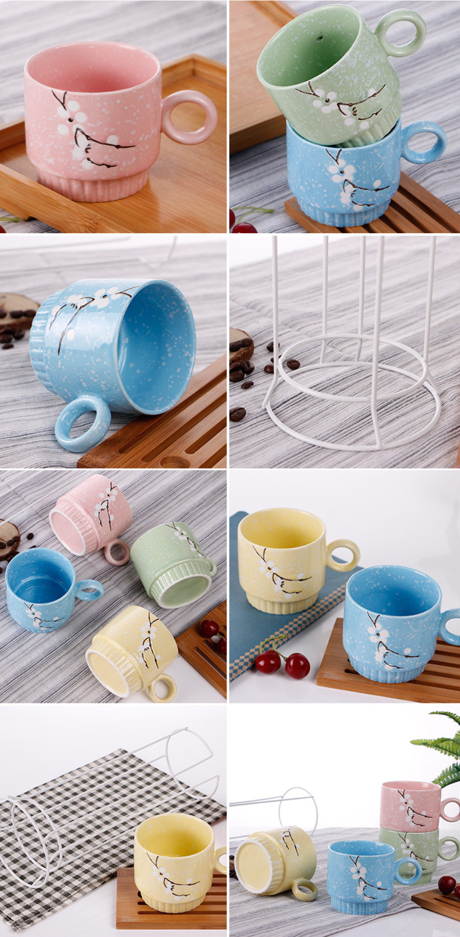 熱賣手繪雪花杯 家用陶瓷花茶杯(四色疊杯【1套】)