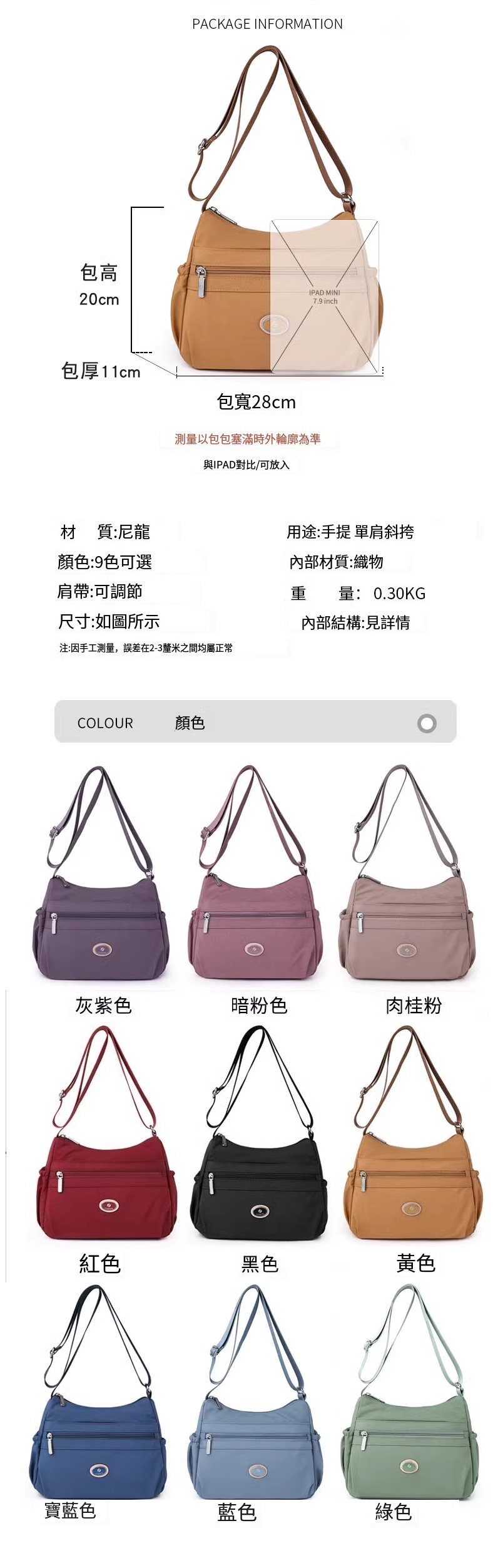 熱賣手提包 斜挎包 單肩女包 多隔層帆布包 【藍色】