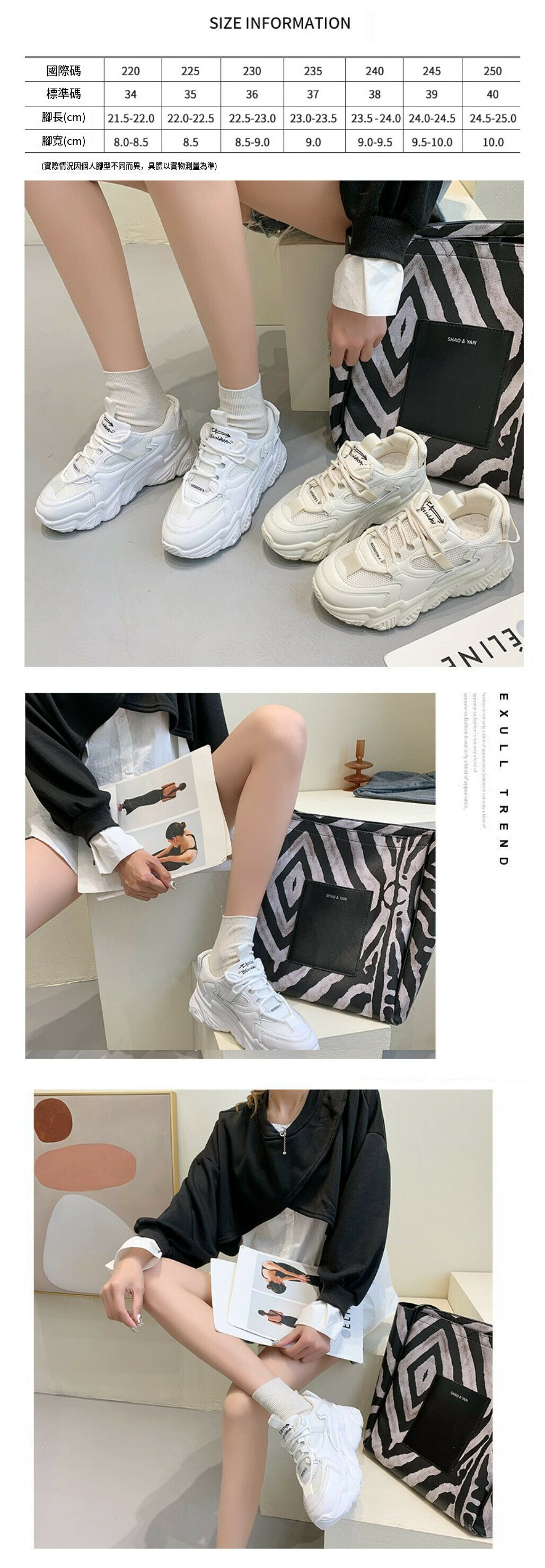 熱賣增高網面老爹鞋【米色】【35-40碼】(下單後請聯絡客服確認發貨尺碼)