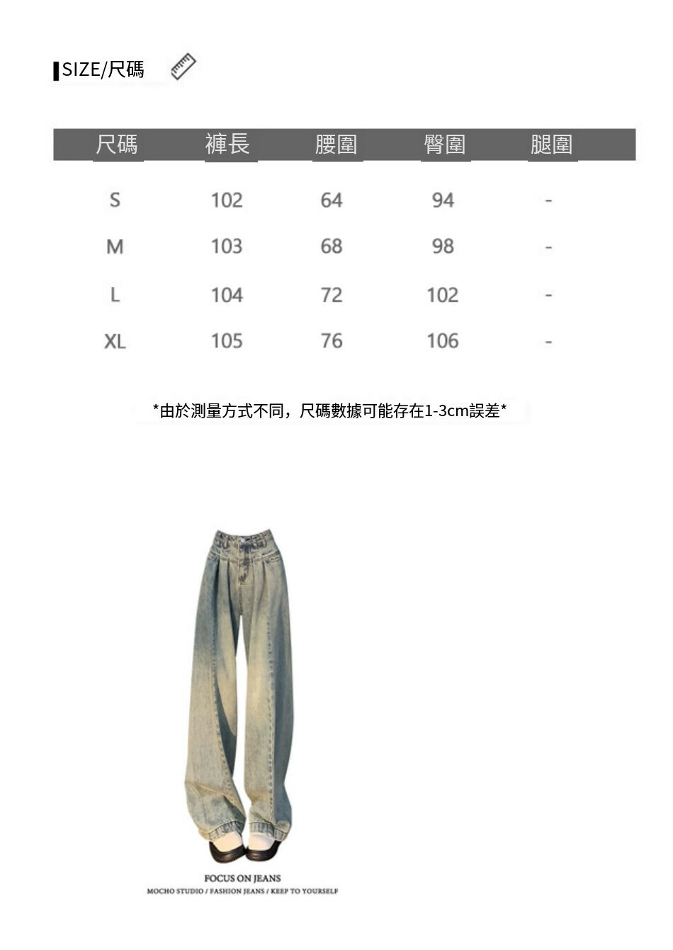 熱賣高街闊腿牛仔褲【淺藍色】尺碼【S碼-XL碼】【下單後請聯絡客服確認發貨尺碼】