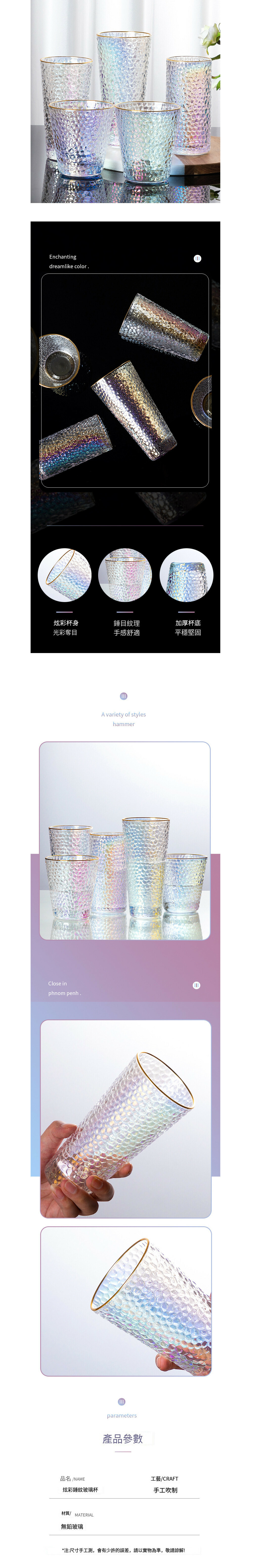 熱賣耐高溫金邊炫彩玻璃杯(幻彩錘紋杯高款小號340ml-【1個裝】)