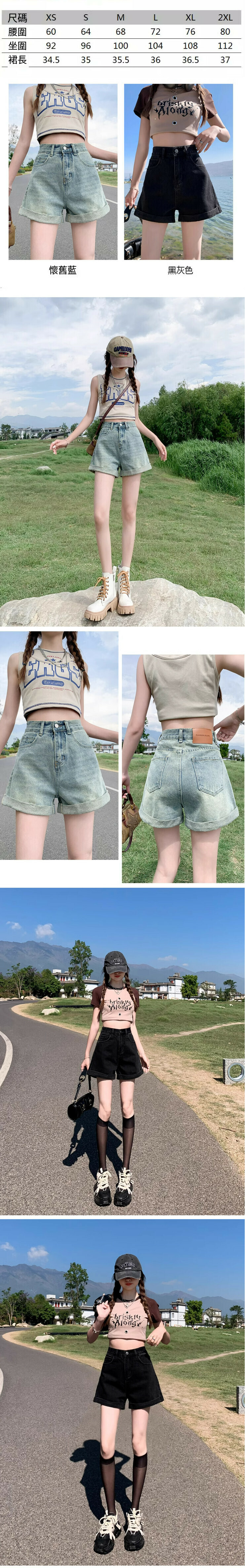 熱賣高腰牛仔短褲【懷舊藍】【XS-2XL碼】(下單後請聯絡客服確認發貨尺碼)
