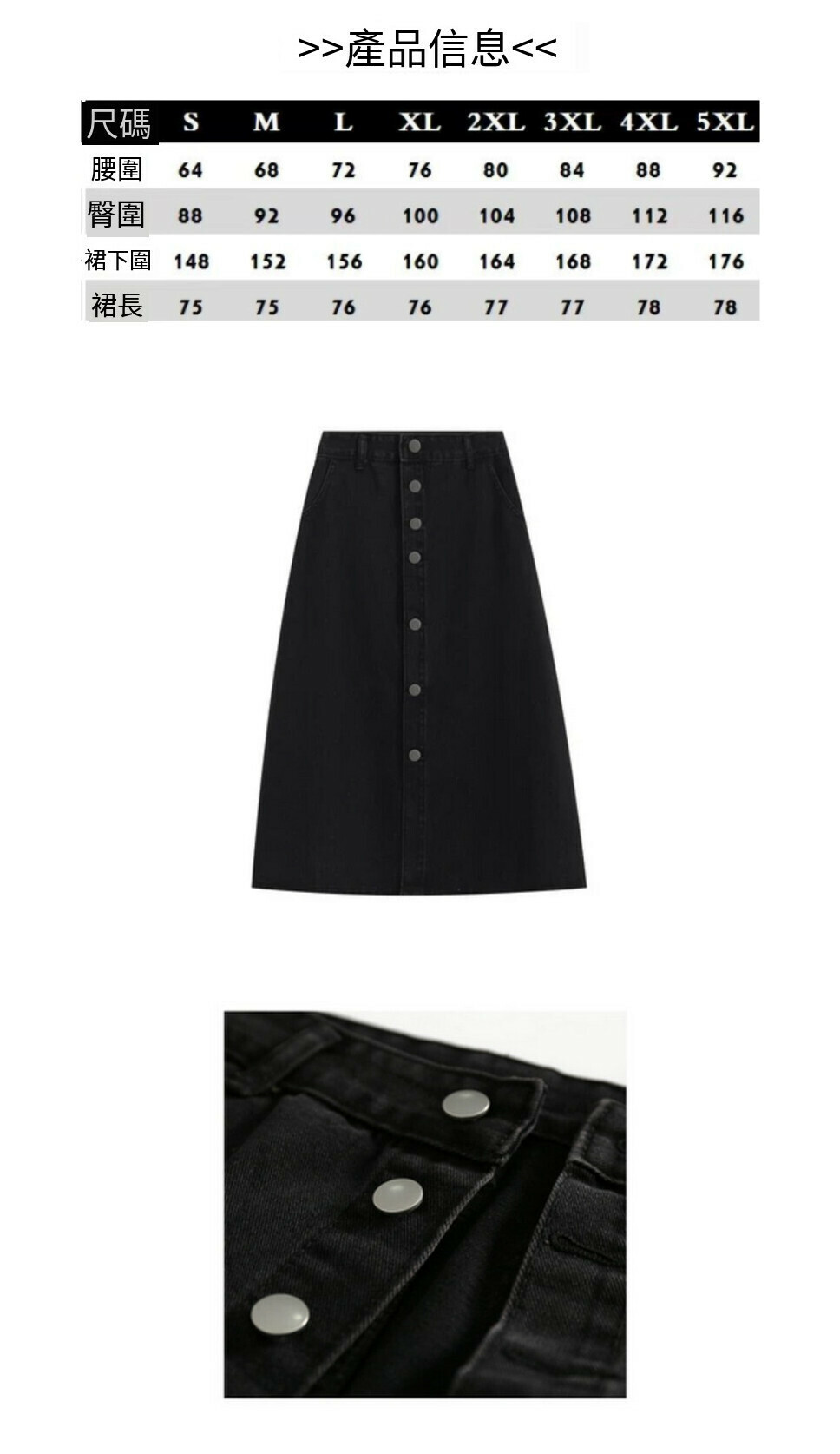 熱賣高腰牛仔半身裙【黑色】【S-5XL碼】(下單後請聯絡客服確認發貨尺碼)