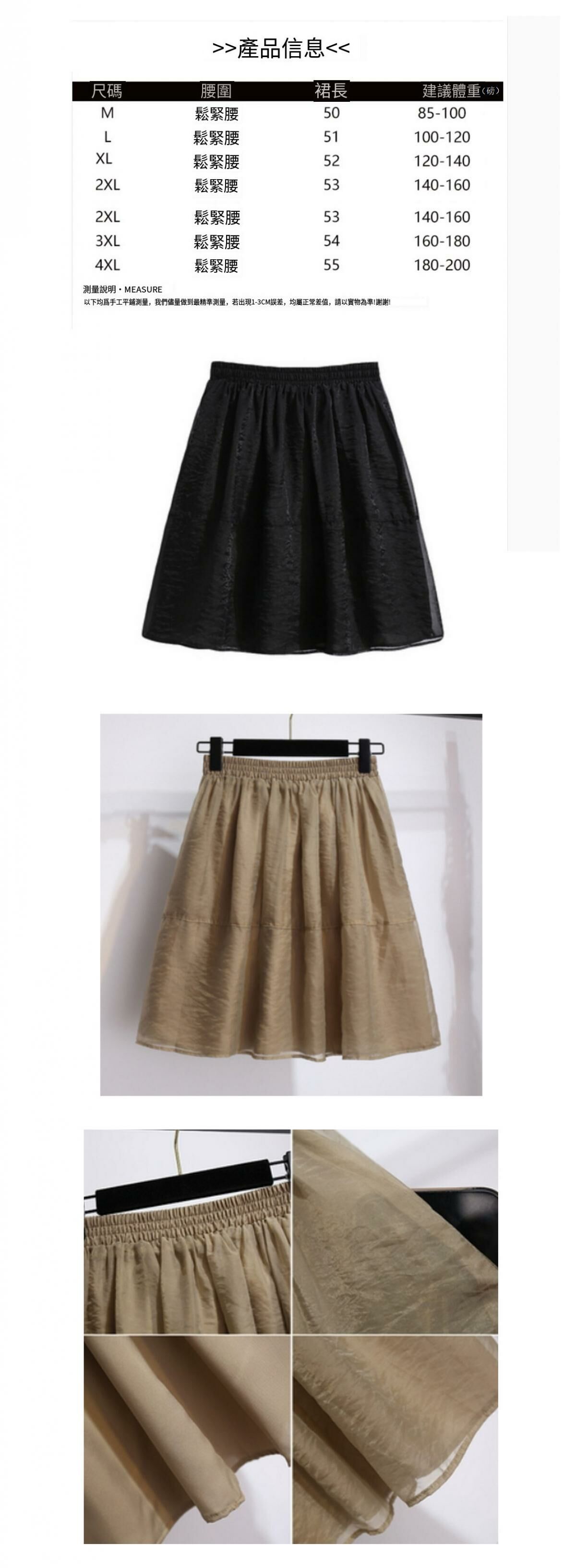 熱賣高腰歐根紗半身裙【黑色】【M-4XL碼】(下單後請聯絡客服確認發貨尺碼)